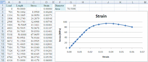 Stress Strain Curves in Excel Calculate Youngs Modulus. Therefore StressMPa LoadkN Areamm2 1000 Enter the formula Stress In the Stress column E highlight the cell below StressMPa. Click once on your graph.